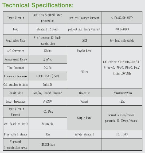 -Simultaneous 12 leads ECG acquisition and display-Compatible with Andriod 3.1 and above operating s