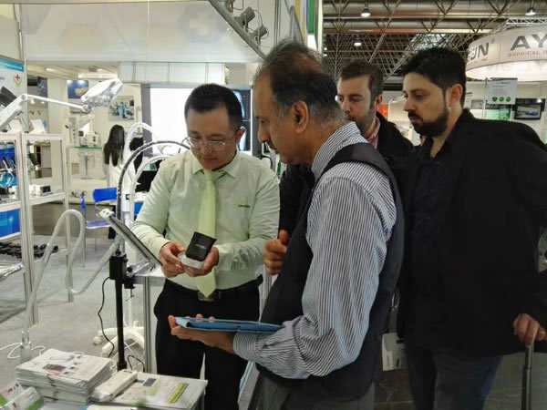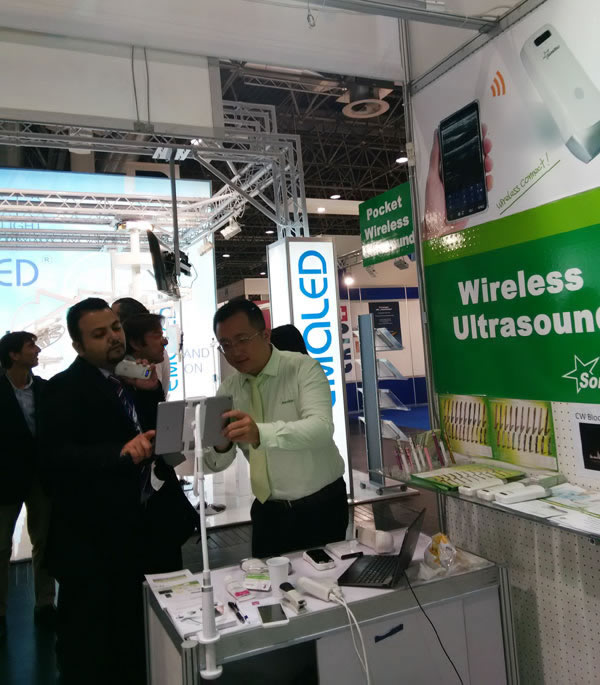 The wireless probe became a hot spot in the exhibition again, the new version of the high definition had won wide acclaim from customers.Ophthalmic ultrasound scanner,color dopper ultrasound, Ultrasound-ECG integrated machine,CW blood flow analysis probe,ect, also attracted many customers.