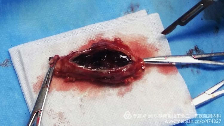 Because of facing the popularized internal fistula forming operation, there is no ready-made blood vessel prosthesis at hand, otherwise, the tumor body is cut to put a blood vessel prosthesis, which is perfect