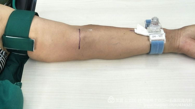 For distance between internal arteriovenous fistula’s elbow vein blood vessel and brachia artery is too close, here is a high incidence area where brachial artery is punctured by mistake.