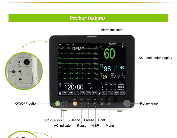 Standard Interface , Large font , ECG Standard Full Display ,OXY Trend Table ,BP Trend