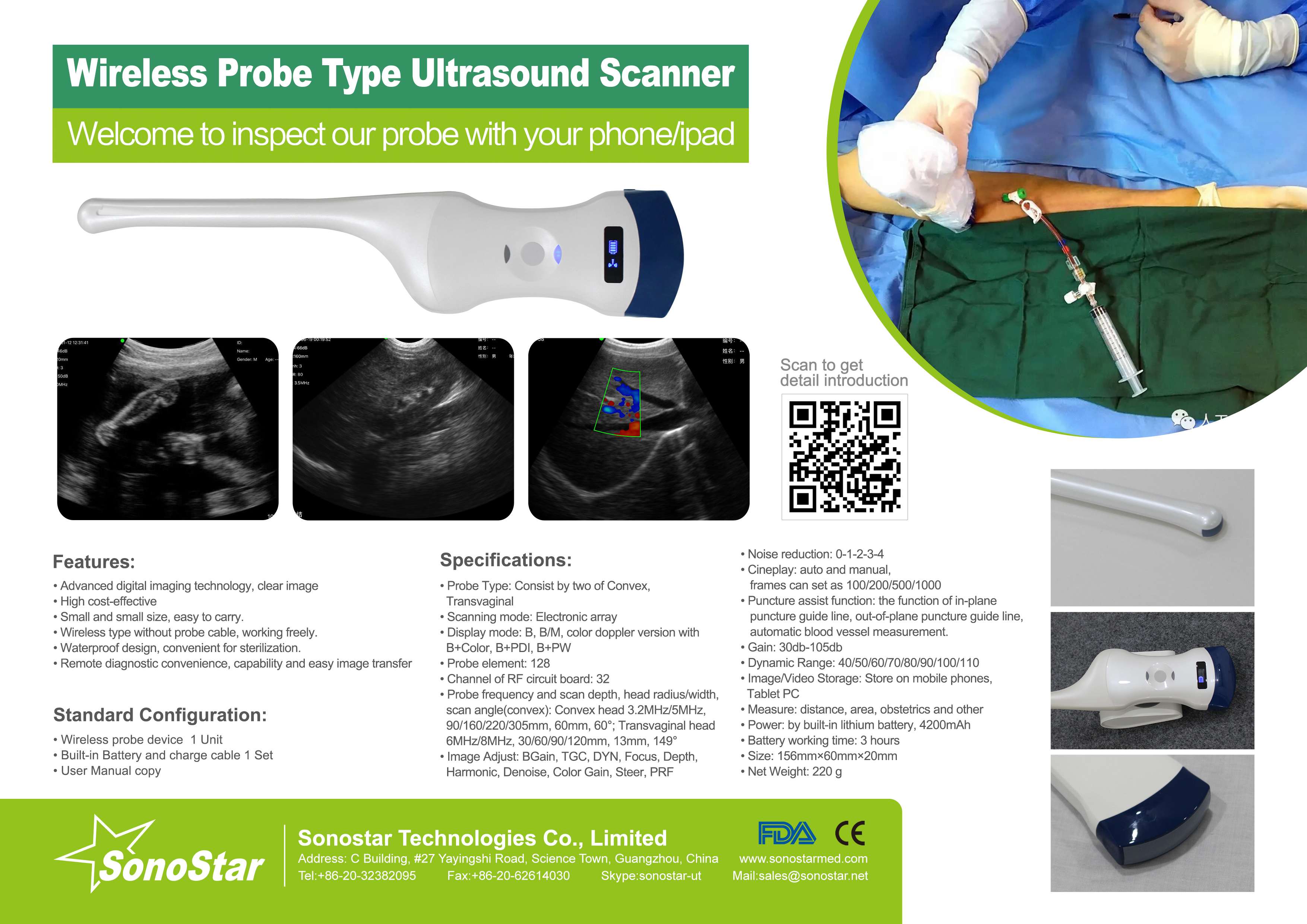 • Probe Head: R60 Convex+R13 Transvaginal