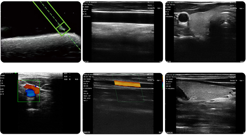 • 穿刺辅助功能:磁导航穿刺针位移角度显示功能,平面内穿刺引导线功能,平面外穿刺引导与血管自动测量功能