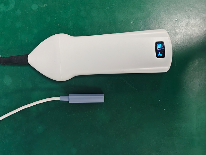 带指套探头的掌上彩超,小小的掌超主机放在口袋可随处走,手指套着探头即可完成打图成像,让手不再需要握着探头而可解放出来还能拿其他东西,特别适合术中等应用