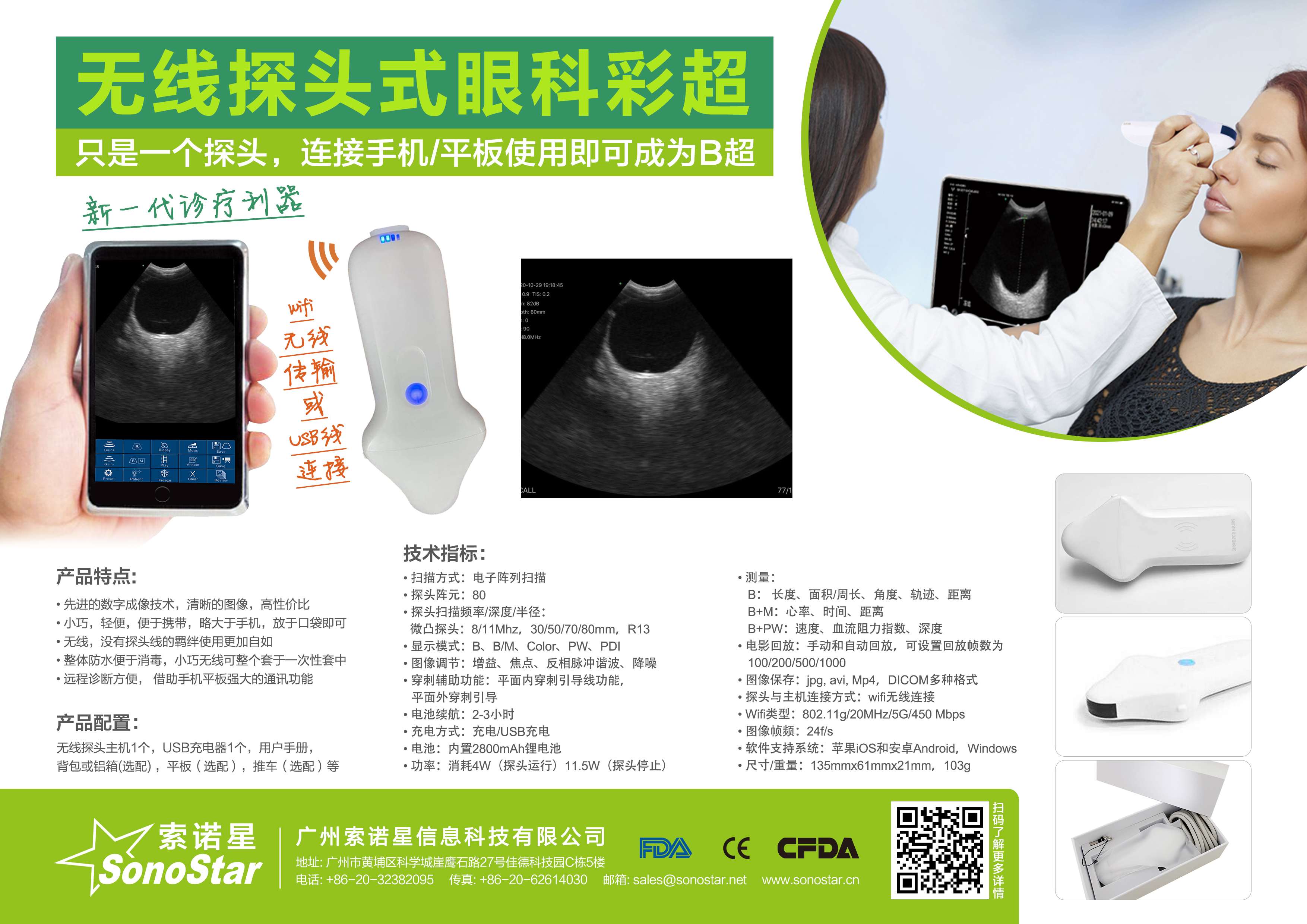 • 探头扫描频率/深度/半径:微凸探头:8/11Mhz,30/50/70/80mm,R20,88°