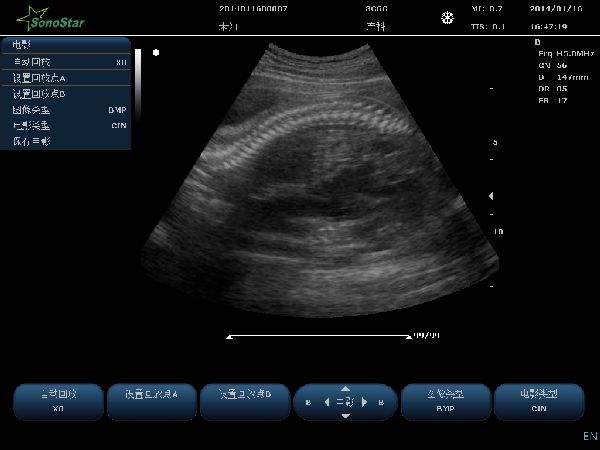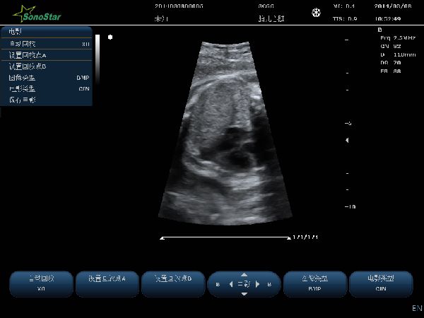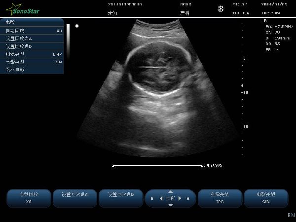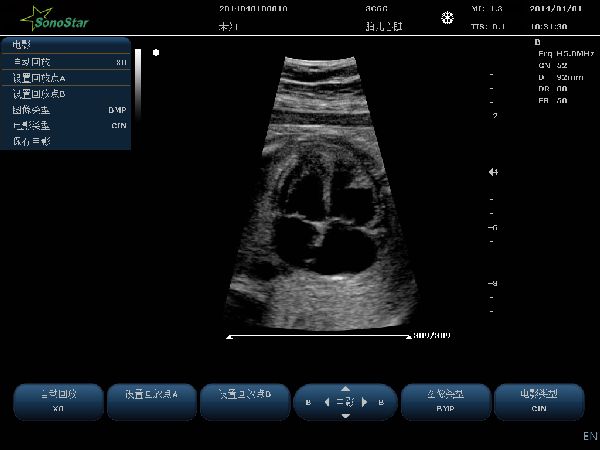 4)产科B、PW模式应用测量:包括全面的产科径线测量、体重、单胎孕龄及生长曲线、羊水指数、胎儿生理评分测量等
