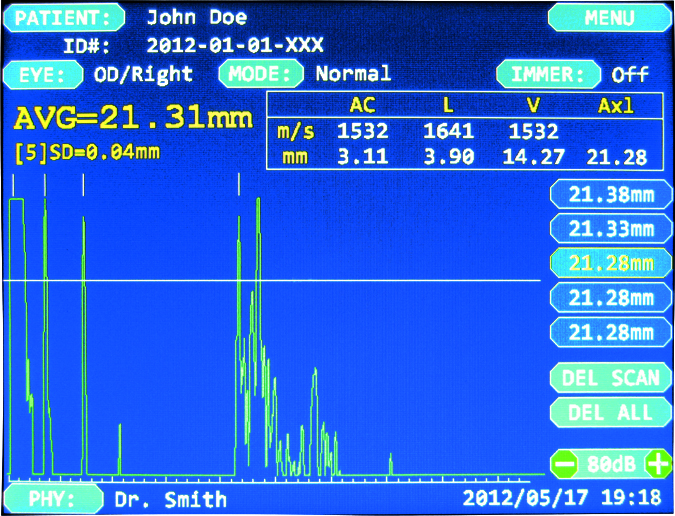 SAP-100眼科A超/角膜测厚仪具有黄斑识别功能,可以精确测定眼轴长度,前房深度,晶状体厚度,以及进行人工晶体计算。