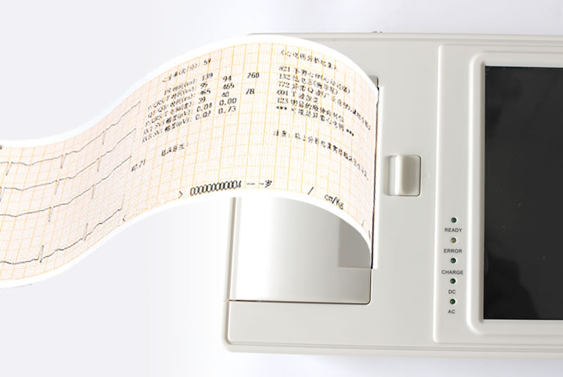 -记录纸宽112mm,可记录清晰准确的六道不压缩心电波形及导联标记、灵敏度、走纸速度、滤波器状态等信息