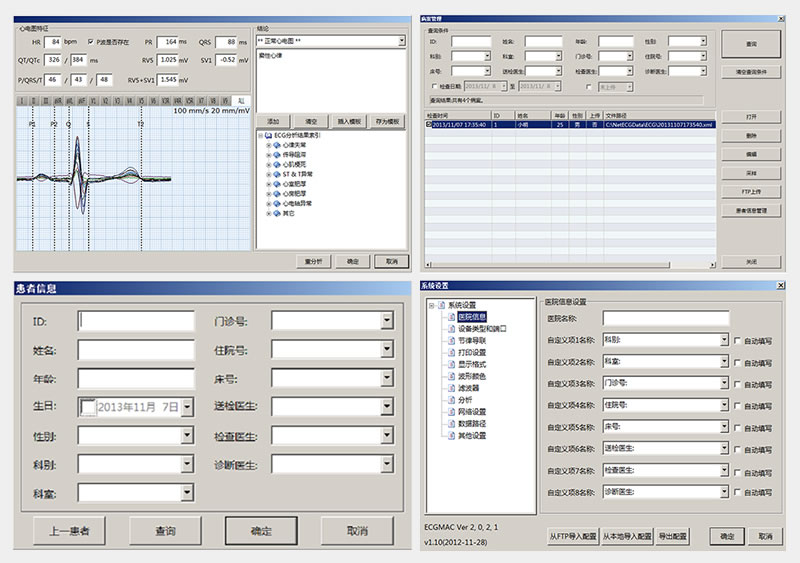 - 丰富的数据库管理系统,可储存多达几十万份心电图报告