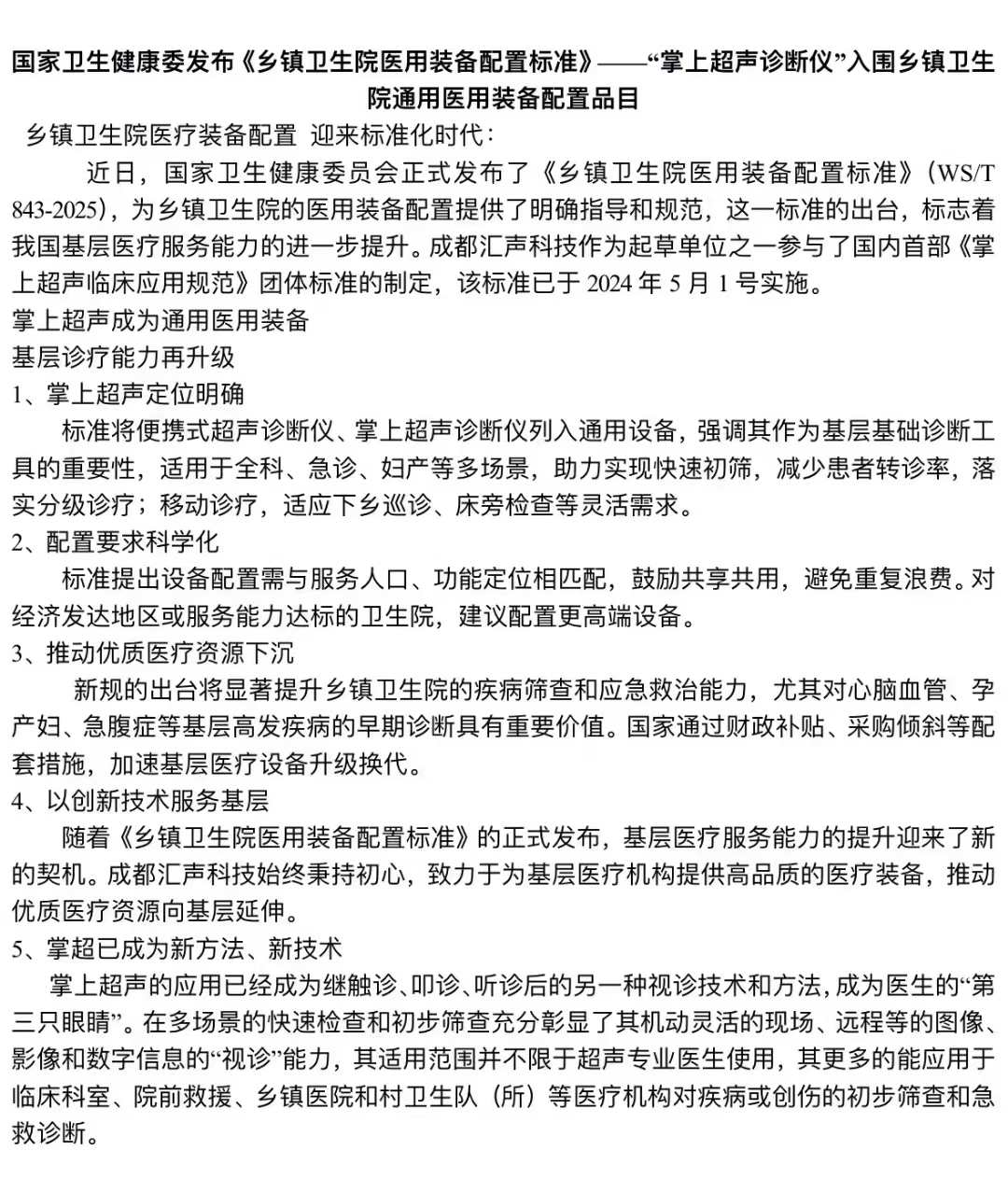 掌上彩超入列卫健委新颁布的《乡镇卫生院医用装备配置标准》,业界反应热烈,齐聚一堂共同探讨应用和推广,期待掌上彩超下来基层市场的大爆发