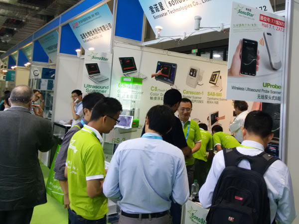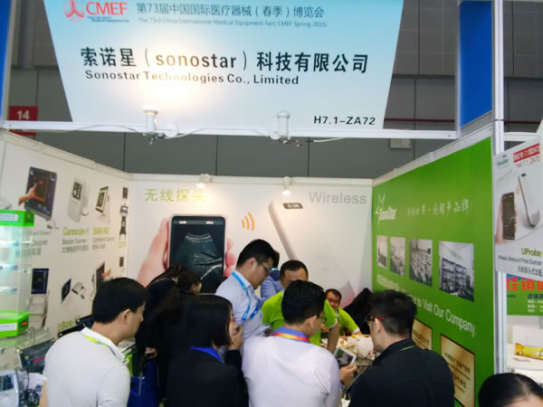 | 我司成功参展2015春季医博会(上海) 2015年5月15-18日在上海举办的2015春季医博会,此次号称历来规模最大的医博会人流爆满乃至让上海城市配套应付不过来。我司无线探头式B超成为了展会的一大亮点,很多经过客户深被吸引驻足参观洽谈,更有很多听到他人介绍或拿到我们散发的卡片后寻踪而来。还有SS-8型ARM系统笔记本B超、C5型笔记本彩超以高清的图像和强大的功能也获得了客户的广泛关注和肯定,其中有5个客户还当场买走了我司参展的仪器。正因如此,我司展位大部分时间处于爆棚的状态,展位空间不够很多客户只能在展位门口接待、洽谈,甚至由于我们没有足够人手接待而只能自取资料和观望,在此深表歉意。 |