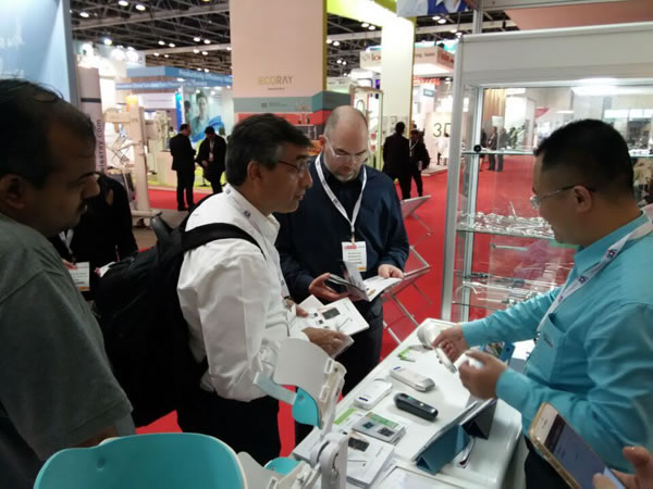 此次展会我司展位在主展馆,与GE、飞利浦、西门子等公司同一个展馆,我司的无线探头、笔记本B超彩超等产品吸引了众多客户,成为展会的热点之一。