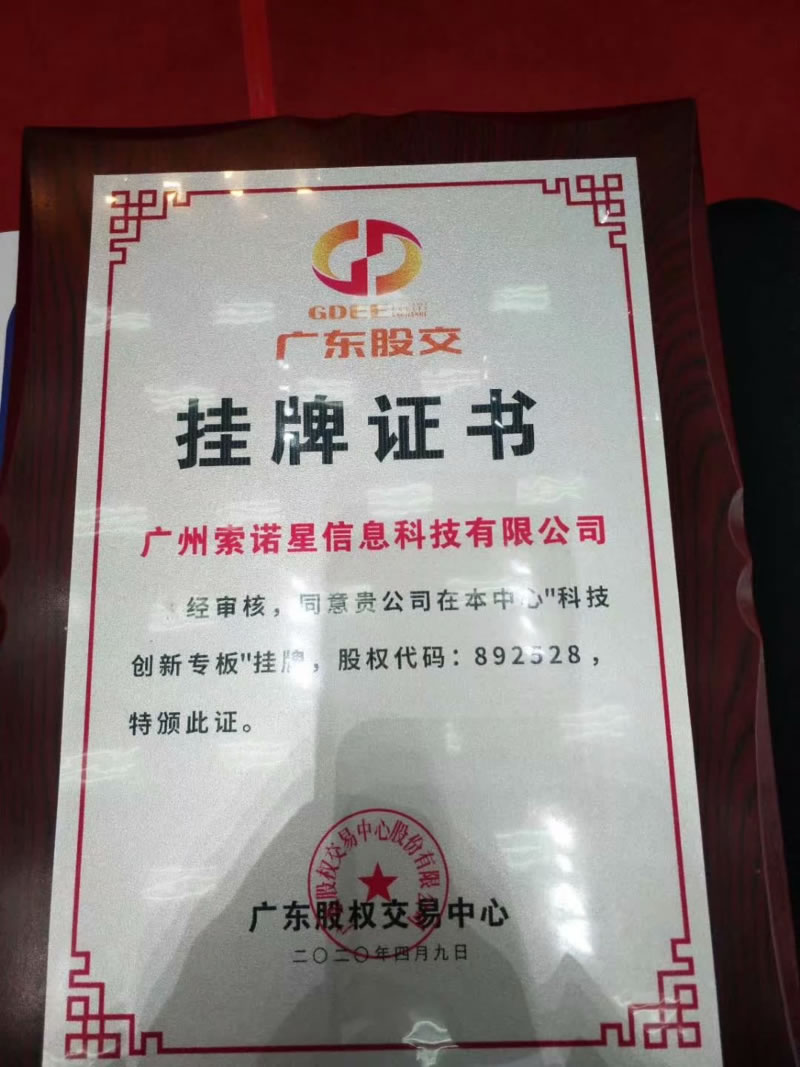 热烈祝贺索诺星在广东省股权交易中心科技创新专板挂牌